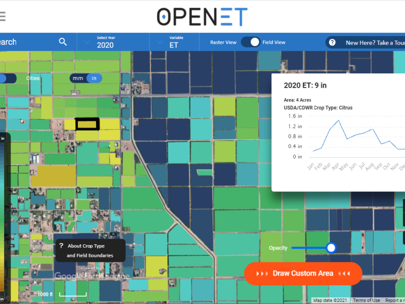 Rosedale-Rio Bravo Water Storage District in Kern County has already been using OpenET. The district is using the platform so landowners can track their own water budgets by parcel. Rosedale has also been experimenting with an online water trading market simulation.