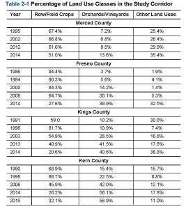 The report looked at the percentage of land in the Aqueduct study corridor planted in permanent crops starting in the late 1980s:
