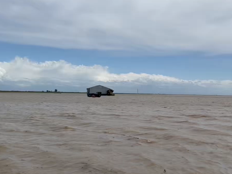 Back then though, “It didn’t flood on that side,” he said referring to lands south and east of Corcoran, where his family ranch looks like a vast ocean with a lone metal shed holding vigil against the waves.