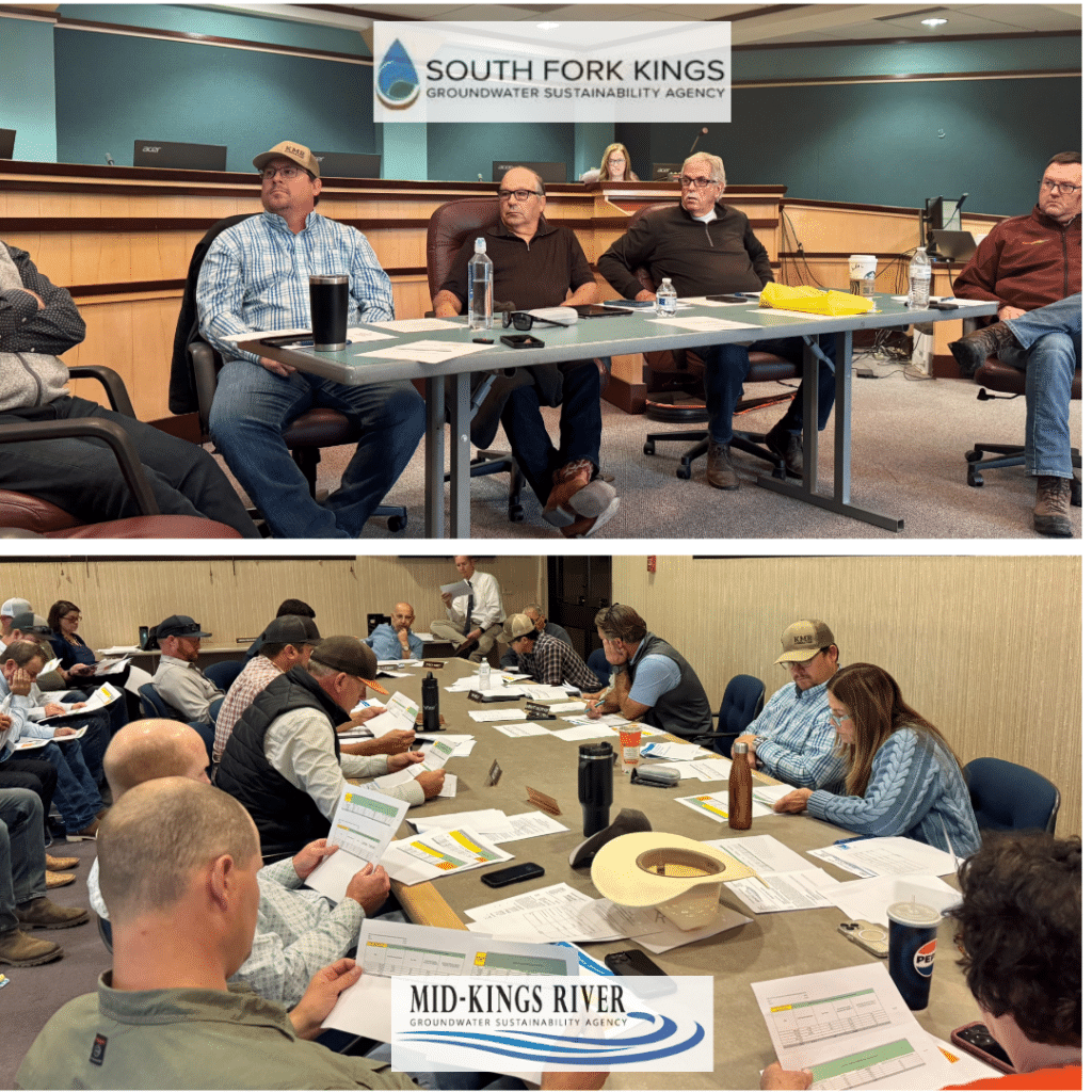 Bottom photo: Mid-Kings River GSA advisory group members. Both groups met Oct. 30 to discuss pumping allocations. Monserrat Solis / SJV Water