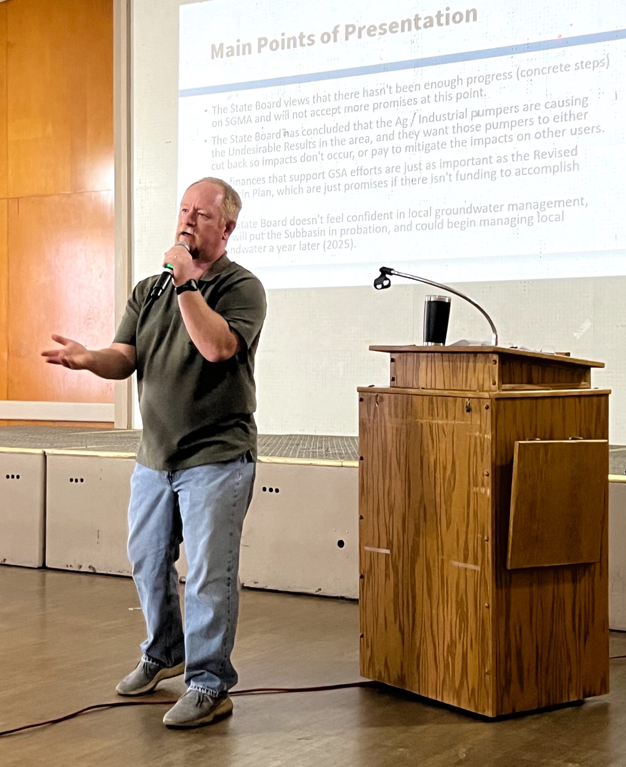 Mid-Kings General Manager Dennis Mills gave an overview of the last five years, including the formation of the GSA, SGMA requirements, proposed fees and how all this plays into the April 16 probationary hearing.