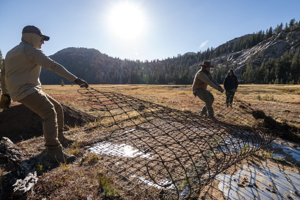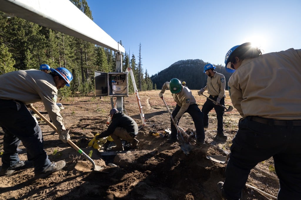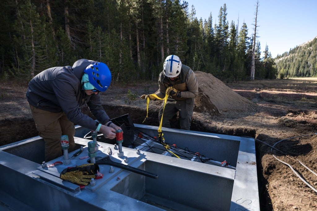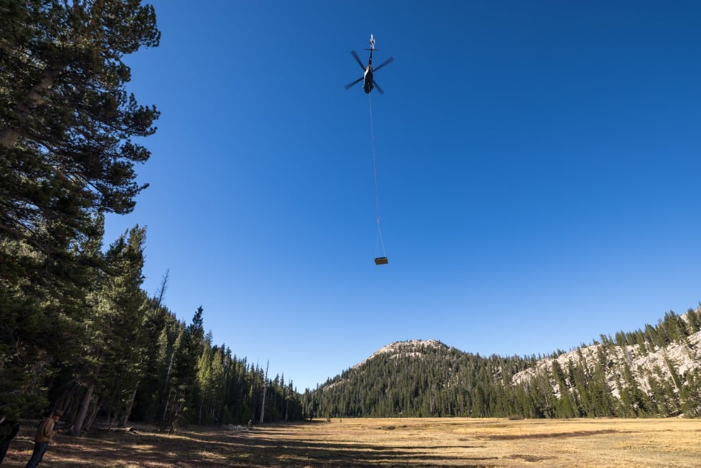 Oct. 8, 2025: DWR’s Division of Flood Management, California Conservation Corps, and GEI Environmental and Architectural Historian mobilize equipment and crew on horseback to renovate an old, dilapidated snow pillow weather station in the Emigrant Wilderness, Stanislaus National Forest.A morning view of Grizzly Peak as seen from Horse Meadow. Kennedy Meadows Pack Station cowboys lead the way to Horse Meadow.DWR’s Division of Flood Operations Bryan Prestel, Associate Electrical Engineer, and US Forest Service packer John Sprik, discuss the demobilization of an old weather station structure and prepare for the new permitted structure and ensure it’s out of the historic cabin view. California Conservation Corps Crew Supervisor Travis Hanson measures a hole for DWR’s Division of Flood Management to renovate an existing snow pillow station, with a new Hinge Fold Tilt-Pole which will work with the Horse Meadow snow pillow station to transmit snowpack data to the statewide monitoring network.DWR’s Steven Reichmuth, Water Resources Associate Engineer, and Bryan Prestel, Associate Electrical Engineer, decommission the existing weather station. DWRs’ Steven Reichmuth, Water Resources Associate Engineer, and Bryan Prestel, Associate Electrical Engineer, remove a bear net from the existing snow pillow.A black hawk helicopter delivers construction supplies that were too heavy to bring in by mule.A Kennedy Meadows pack mule gets some downtime as crews repair a remote snow sensor in the Emigrant Wilderness.DWR’s Steven Reichmuth, Water Resources Associate Engineer, and Bryan Prestel, Associate Electrical Engineer, renovate the existing snow pillow.California Conservation Corps Crew Supervisor Travis Hanson and California DWR Associate Electrical Engineer Bryan Prestel share a laugh during work.California Conservation Corpsmember’s fill in a hole for the rennovated weather station.Crew members keep warm overnight on a four-day trip to repair a remote snow sensor in the Emigrant Wilderness.California Conservation Corpsmember’s start their hike out after installing the new Hinge Fold Tilt-Pole, which will work with the Horse Meadow snow pillow station to transmit snowpack data to the statewide monitoring network. A Kennedy Meadows Pack Station cowboy leads a string of mules during a four-day trip to repair a snow sensor.The Emigrant Wilderness provides amazing views for DWR crews as they trek back from repairing remote snow sensor equipment.