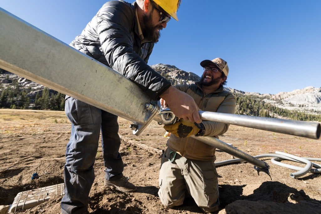 Crews had to trek into the Emigrant Wilderness on horseback 18 miles for just one sensor. A black hawk helicopter brought in the ballast and new Hinge Fold Tilt-Pole, which will make sensor reading easier and more efficient. The trip took four days.