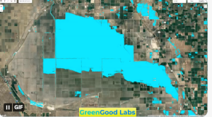 Twitter screengrab of satellite mapping showing water covering the northern and southeastern sections of Tulare Lake.