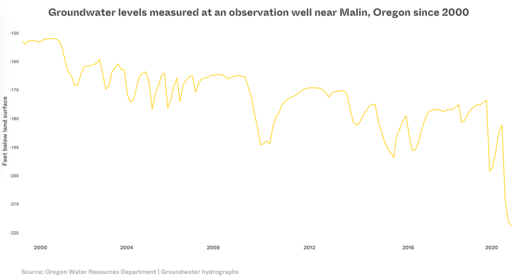 “Every time you pump more from your well in a basin where the groundwater and surface water are connected […] you’re making the next drought worse,” said McCarthy, of Oregon WaterWatch. “So you’re digging yourself into a bigger and bigger hole.”
