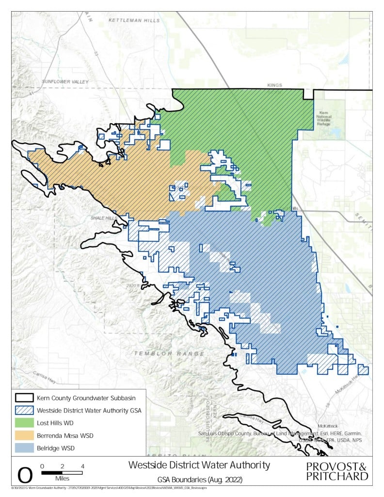 The ag districts, collectively called the “Westside Districts,” include the Belridge and Wheeler Ridge-Maricopa water storage districts along with the Berrenda Mesa and Lost Hills water districts in Kern County and the Dudley Ridge Water District in Kings County.