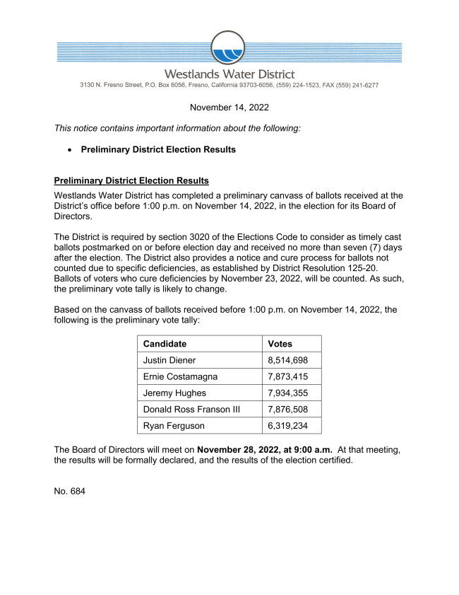The sprawling district that covers much of western Fresno County had been criticized during last year’s floods for letting large amounts of water flow to the ocean instead of maximizing recharge. Board president Jeff Fortune said at the time that he was proud of how much Westlands was able to capture given it had just begun is recharge program.